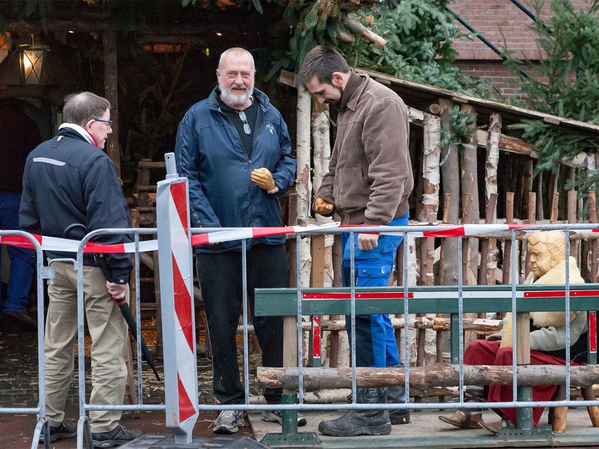 Op zaterdag 17 december 2016 werkte een grote groep vrijwilligers hard om de kerststal op te bouwen en om loten te verkopen voor het behoud van de kerststal.